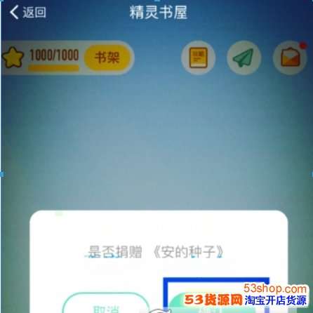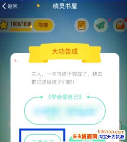 进入菜鸟裹裹App,点击上方“精灵书屋”入口,可以看到能量如果收集到满1000就会弹出捐书界面,系统会随机选一本书,如果自己不喜欢,可以点击“去换本书”。