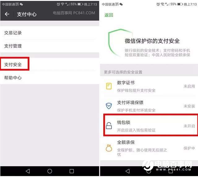 2、然后再一次点击进入“支付安全”→“钱包锁”,如下图所示。