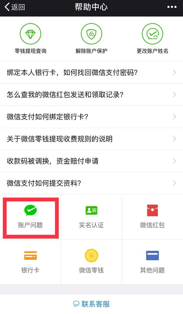 3点击界面右下角的“账户问题”
