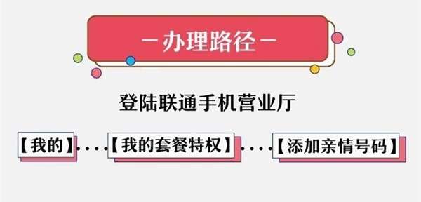 办理路径是登录联通手机营业厅,在“我的”-“我的套餐特权”中添加亲情号码即可。值得一提的是,微博微卡添加的亲情号码不限省份,可跨省添加,只能是单项打电话免费,互打免费需要互加亲情号码。