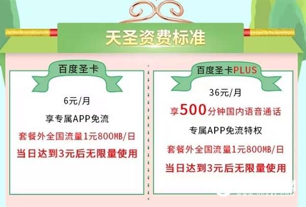 | 百度天圣卡/天圣卡Plus资费详情 | ||