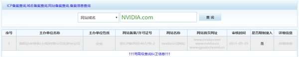而通过ICP备案查询网查询显示,无论是NVIDIA.com还是NVIDIA.cn,备案信息确实不正常。