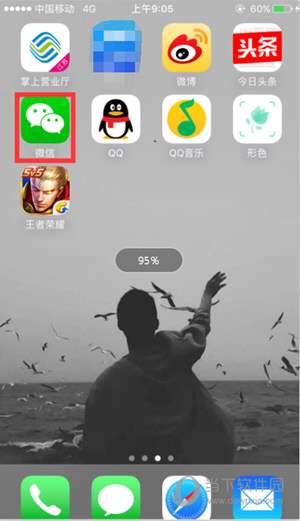 1、首先确保你从网上下载并安装有合适你自己机器版本的微信软件,然后从手机桌面找到微信图标,用手指点击打开它