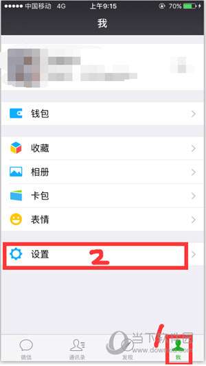 2、在打开的界面默认显示微信信息界面,这时候我们要选择下方的我切换到我界面,在我界面上找到设置按钮