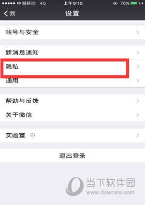 3、用手指点击设置按钮用它打开下设置页面,在这个界面上找到隐私这个选项,同样的用手指点击打开它
