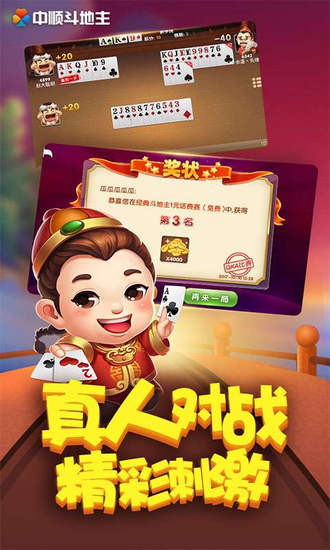 最精彩的牌局对战,最刺激的赛事体验,最纯正的经典玩法,最公平的三人竞技,3亿棋牌玩家的走心之选!