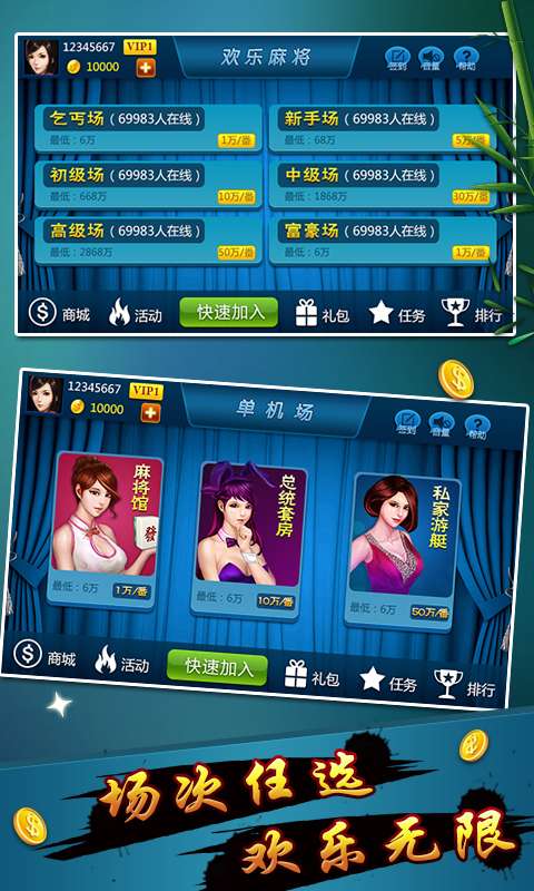 5,画面精美、操作简介,绝对人性化的设计,相信你一定会喜欢上这款欢乐麻将。