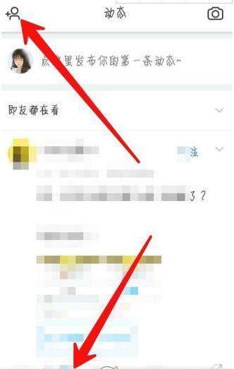 然后我们进入个人首页,点击页面底端的【动态】,再点击左上角箭头所指的小图标。
