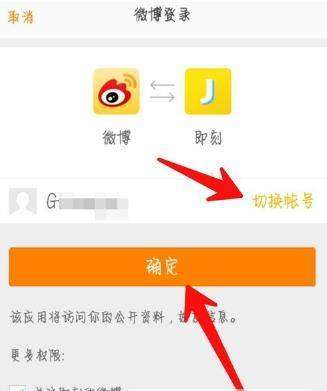 如果你有多个微博账号,那么需要在箭头所指的地方切换选择一个想要绑定即刻的账号,可以勾选小方格,也可以不勾选,根据需要选择就好了。