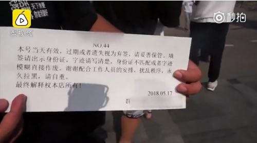 5月17日,武汉一商场门口,上百个大学生在此通宵排队买一双价值1200元左右的限量版鞋子。一学生称,排队一晚上就为拿到买鞋摇到的号码,甚至自带气垫床、板凳。