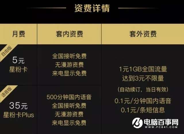 星粉卡资费详情