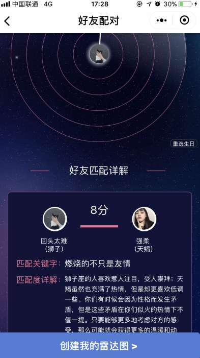 4、你和好友的星座配对就出来了,很可惜,分数很低呢!有没有100分的小伙伴呢?