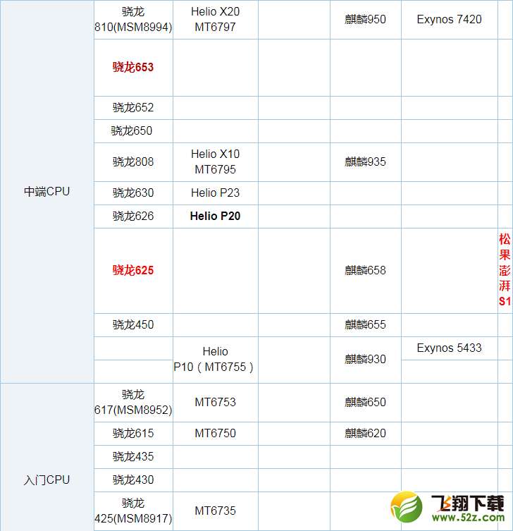 以下是骁龙653和625在手机CPU天梯图中的位置,如下图所示。