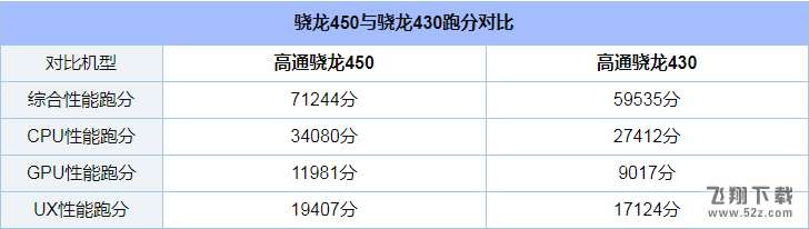从跑分测试来看,骁龙450在各项性能方面全面超越了高通骁龙430,其整体性能差距应该在20%左右。