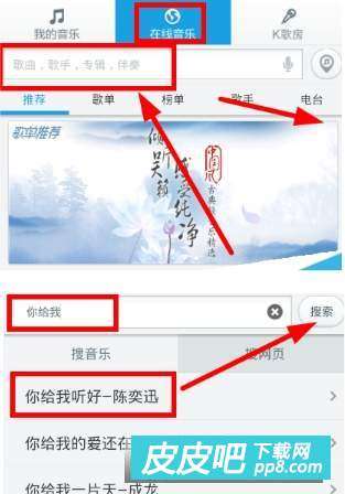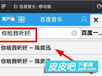2、打开百度音乐App,然后通过搜索查找一首自己喜欢的歌曲,如下图所示: