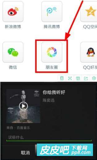 5、点击分享按钮,然后选择分享到朋友圈,写上自己想说的话,点击分享就OK了。