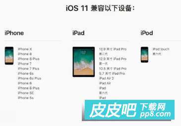 iOS11支持设备包括iPhone X、iPhone8、iPhone8 Plus、iPhone7、iPhone7 Plus、iPhone5s、iPhone SE、iPhone6/Plus、iPhone6s/Plus;
