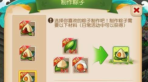1、少侠完成师门、捉鬼、副本、秘境降妖活动即有可能得到包粽子所需材料,粽子材料将收入八宝粽盒中。