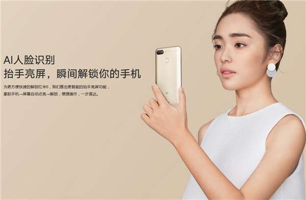 红米 6 提供很多最近小米手机都有的功能,例如 AI 加持,支持人脸解锁、语音助理、智能识物、伪基站智能识别。林斌特别介绍了抬手亮屏 + AI 人脸解锁的功能,称抬手亮屏更智能,而且人理解锁能够高精度匹配,拿起手机后屏幕就能自动点亮实现解锁。