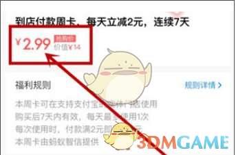 6、周卡活动仅限中国境内支付宝用户和手机号码用户参与。 2.99元就能享受到7天的优惠,还是很划算的。