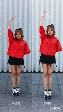 微视使用长腿效果前后对比 目前市面大部分美图类APP都能支持人像照片的腿部长度调整,但在实时视频录制中实现长腿效果,相信也是一个令大部分女生心动的功能。 目前在微视新版本下,用户拍摄时只需要在“滤镜”功能下选取“长腿”,拖拉比例条就可以一步完成腿部长度调整,灵活修饰自己在动态视频中的身材比例。