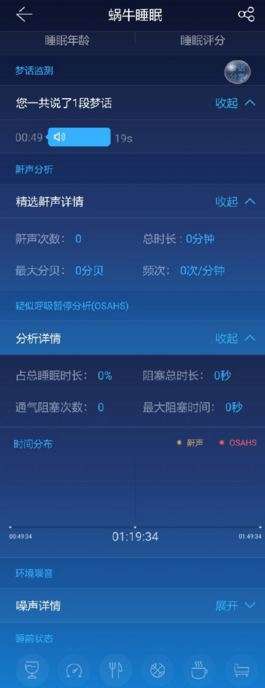蜗牛睡眠APP可以清楚分析用户夜晚的睡眠质量,夜晚浅睡、深睡、梦或者醒的时间,几率梦话、鼾声。