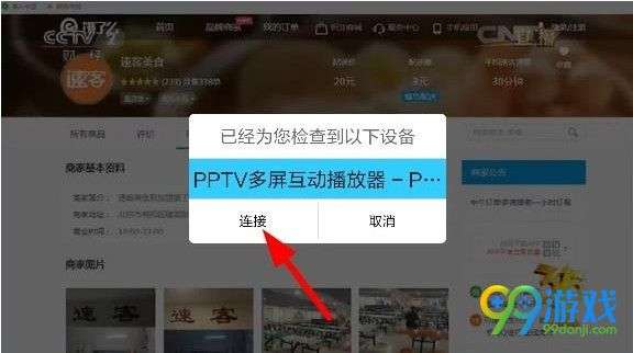 3、接着就会自动搜索处于同一局域网内的视频播放设备,检查到电视后,就可以点击“连接”,就可以了。