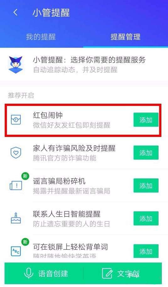 2、正常情况下这个红包提醒功能是关闭状态,我们选择添加开启。