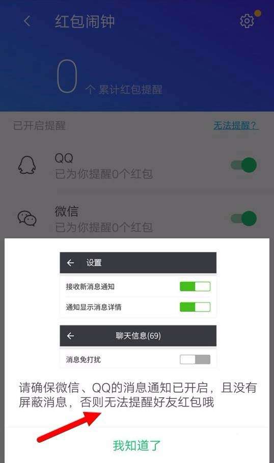 需要注意的是QQ和微信需要开启消息通知,不然也是无法收到提醒的。