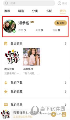 1、进入到企鹅FM,找到“我的”界面,然后点击下图所示的区域;