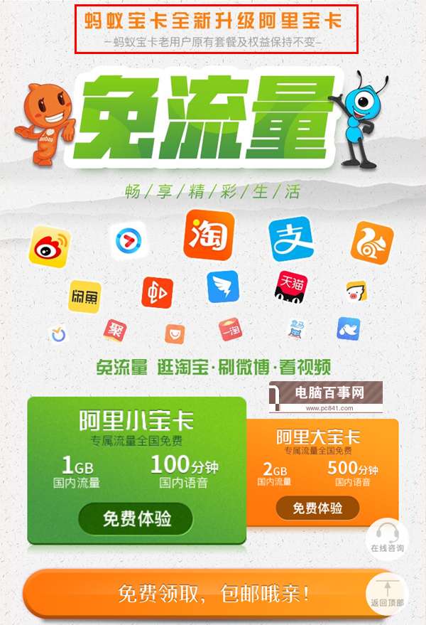 | 套餐外流量计费规则 | 蚂蚁大宝卡100MB以内按0.1元/MB收费,101-1024MB不计费; 蚂蚁小宝+卡超出套餐国内流量1M-150M时,按0.1元/M计费,151M-1024M时不计费,即20元/GB | 促销期办理阿里宝卡,可享受1元包1GB省内流量,2元包1GB省外流量,且促销结束后继续享受该优惠 ,不用不花钱,用完自动叠加,按量计费,当日有效。 |