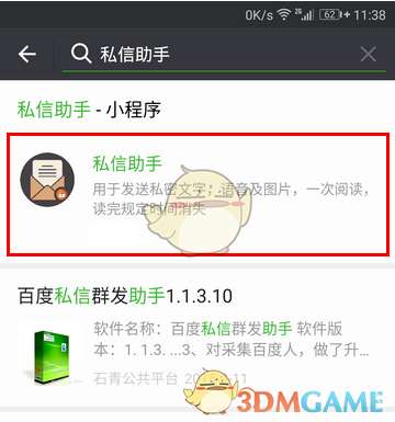 二、在搜索框中输入“私信助手”,然后点击进入结果中的“私信助手”小程序。