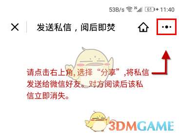 三、等到打开“私信助手”小程序后,依然执行以下步骤: 1、选择一个要发送的私信类型(文本、语音还是图像) 2、编辑好要发送的内容 3、点击左下角的时间按钮,以便设定对方阅读后多少秒自焚 4、最后,点击“确定”完成创建;