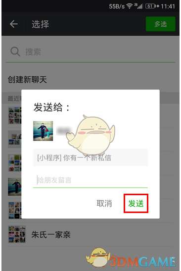 六、最后,选择一个你想将这条私信发送到的朋友就行了。
