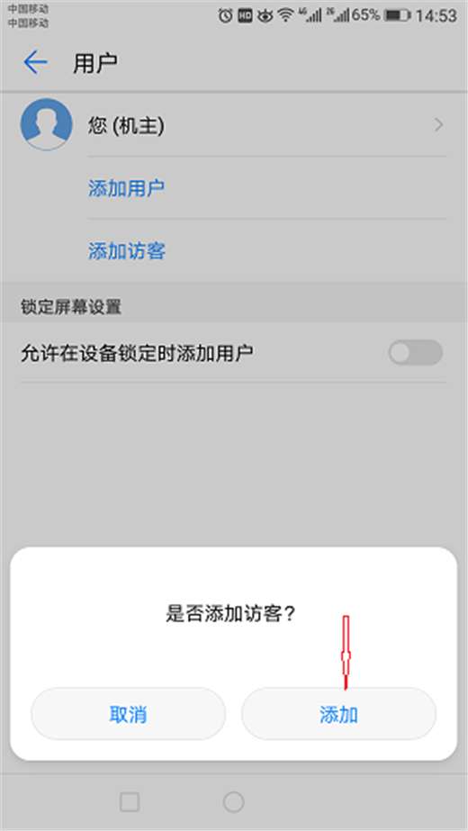 进入用户页面后,点击【添加访客】,下面会弹出一个方框,问是否添加访客,点击添加即可。