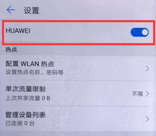 5、打开第一栏设备名称右边的热点开关即可打开热点。