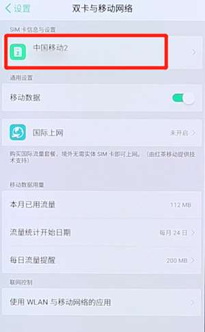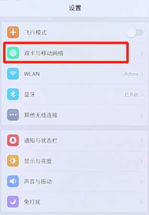 首先,打开手机【设置】,选择【双卡与移动网络】;