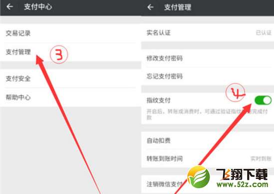 第二步:这时候我们会看到支付管理一项,点击【支付管理】选项,打开【指纹支付】旁边的开关。