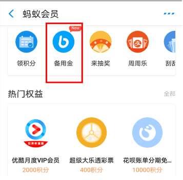 进入手机支付宝APP——我的——蚂蚁会员——备用金