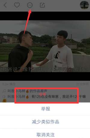 进入到我们喜欢的视频之后,选择视频上方的分享按钮旁边的一个圆点图标,点开之后能发现第一个选择就是一起拍同框。