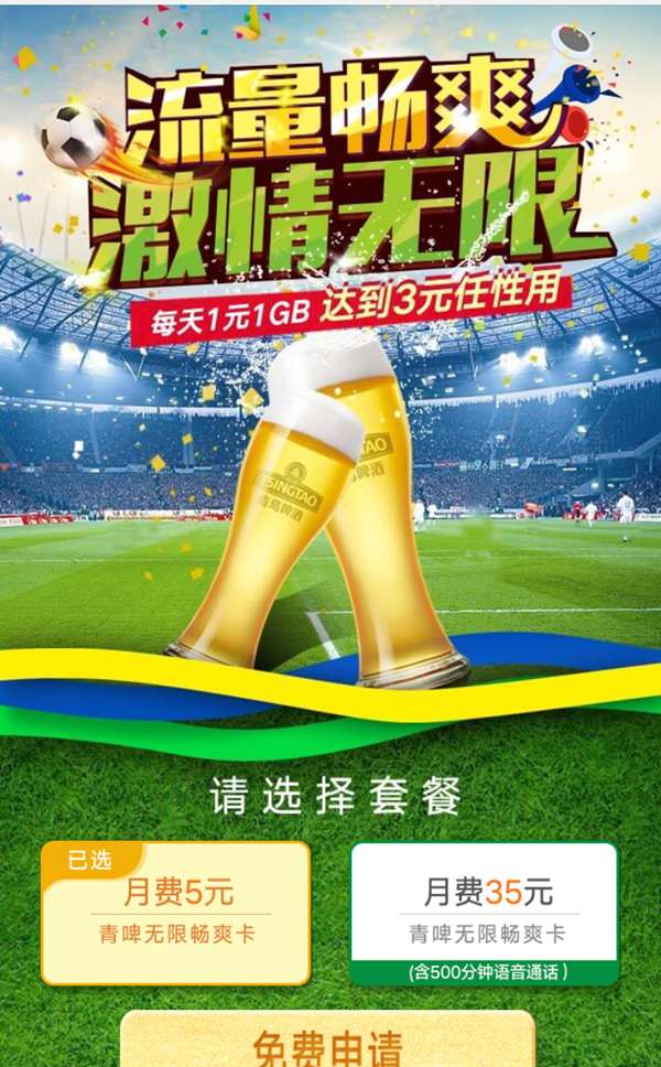 青啤无限畅爽卡是中国联通推出的一款不限量的产品,分为分为“5元青啤无限畅爽卡”和“35青啤无限畅爽卡"。此卡还在火热销售当中,全国地区可以免费办理,不过小编注意到,这款套餐卡跟之前的星粉卡套餐资费十分接近。