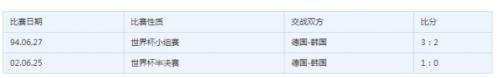 两队此前在2002年韩日世界杯半决赛交过手,德国1:0小胜韩国。两队间的差距非常大,但是依然有不少看点。