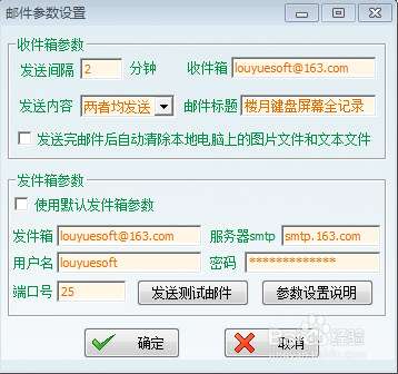 此时在微信上聊天时的键盘输入就能全部记录下来,还能定时的将微信聊天界面截图保存在本地电脑中,如果说此电脑平时不能经常接触或没时间来接触查看记录的话还可以将记录设置发送到自己指定的邮箱当中。只许需要勾选上界面右上角定时发送邮件选项,再到邮件设置窗口中设置好自己的邮箱参数就能随便到哪台电脑上登录自己的邮箱查看记录。