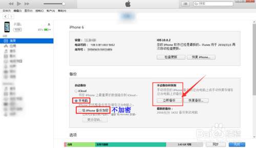 先将手机连接到电脑上,使用iTunes工具将手机进行数据备份。