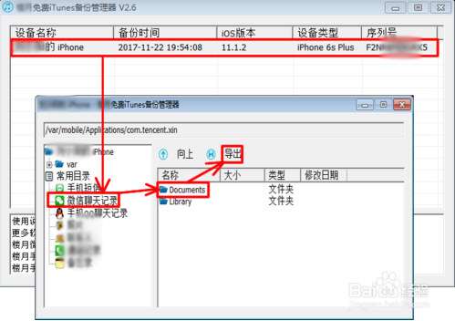 数据备份完成后;再运用楼月免费iTunes备份管理器将微信数据文件夹进行导出。