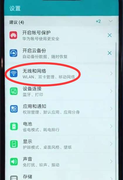 2、找到并点击打开【无线和网络】,