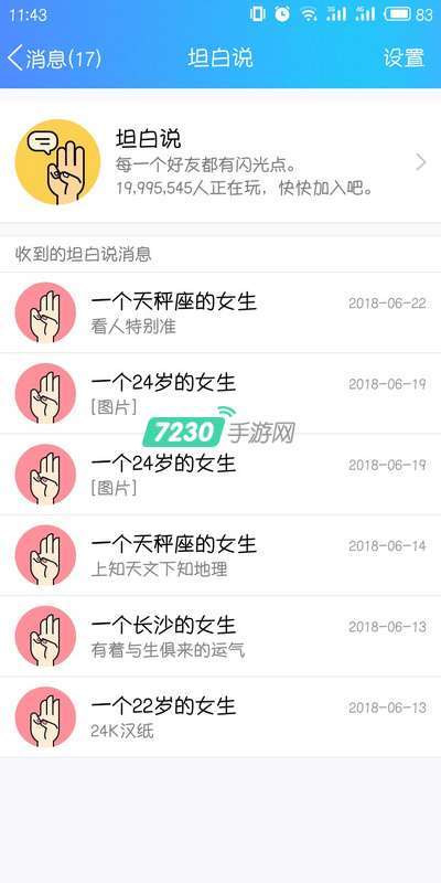 2、打开坦白说页面,会显示收到的坦白说消息