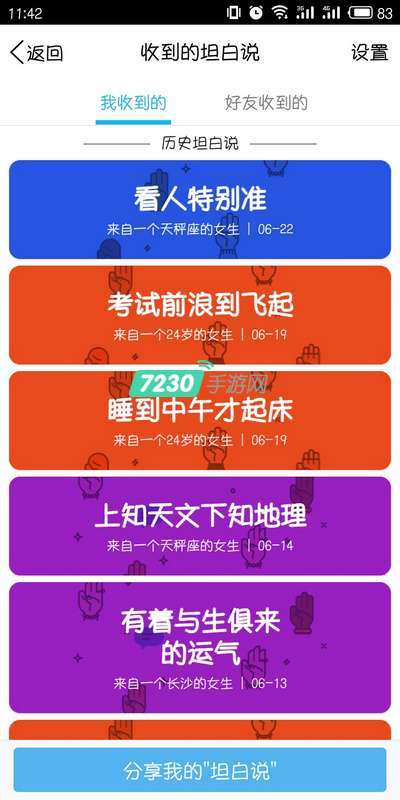 4、点击收到的坦白说,可以查看自己和好友收到得所有坦白说