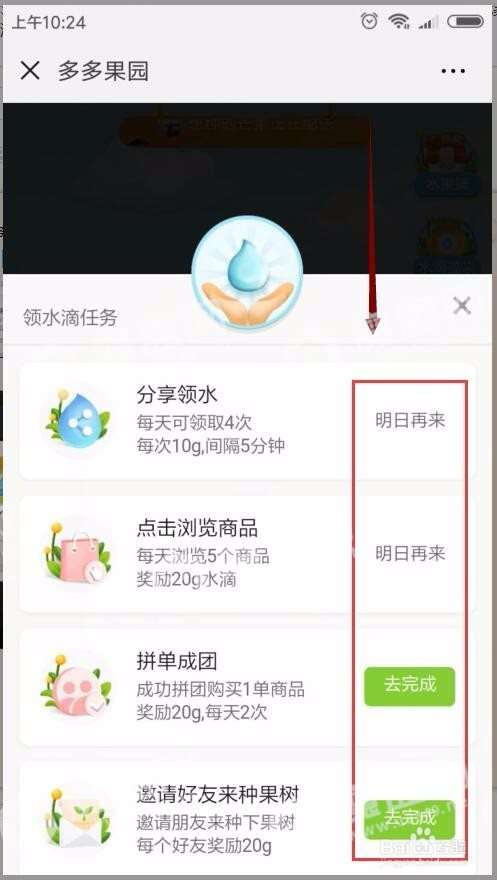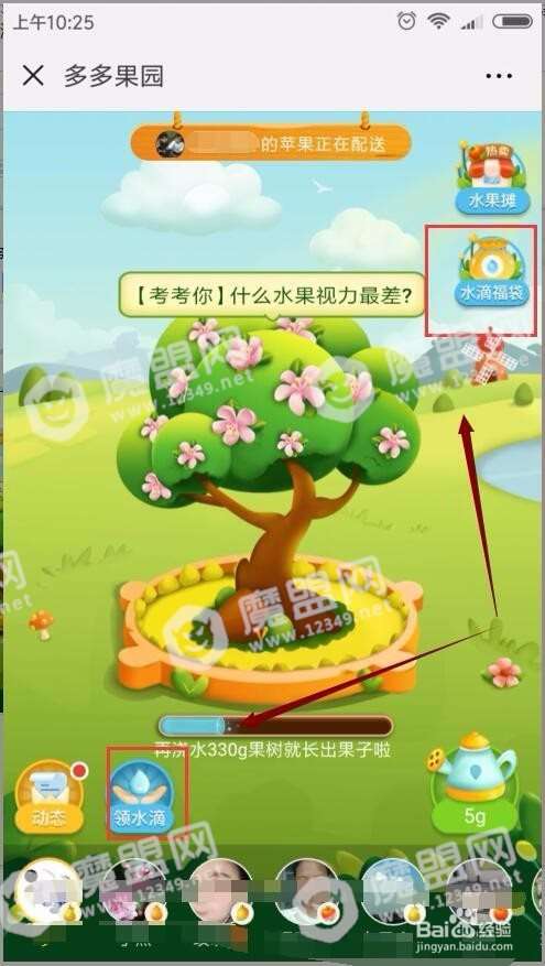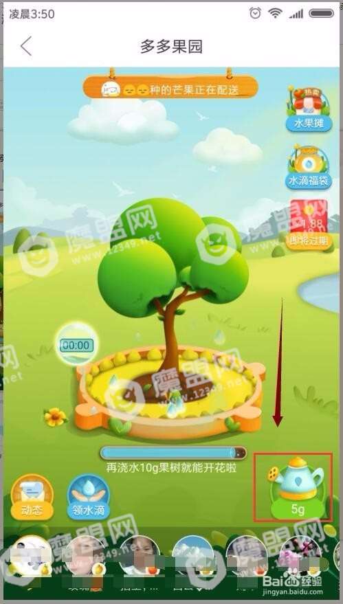 3.多邀请一些朋友种下果树并不定时浇水,从不同的好友果园中获取水滴。