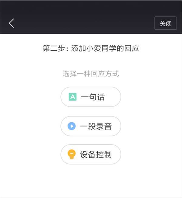 3、添加你想要小爱同学的回应,可以是一句话、一段录音、或者是设备控制;